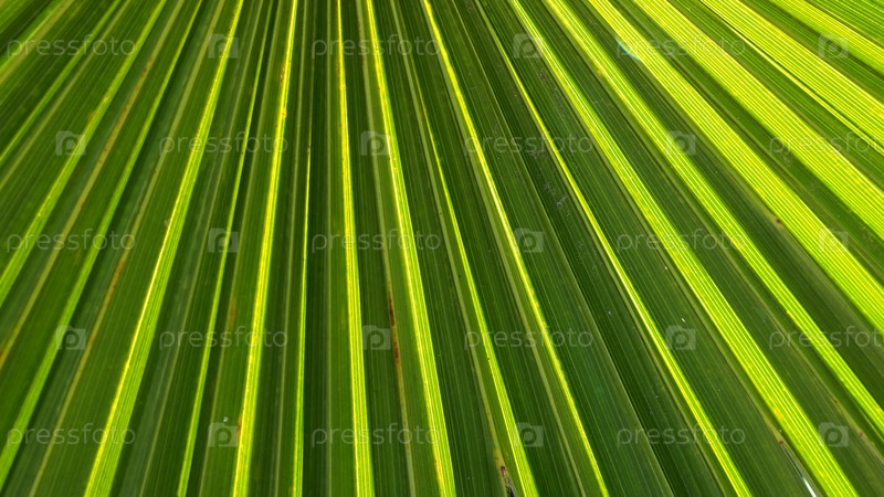Текстура пальмовых листьев с тенью и светом. Пальмовые листья ярко-зеленого и желтого цветов. Тропический красивый фон. Летний пляжный туризм
