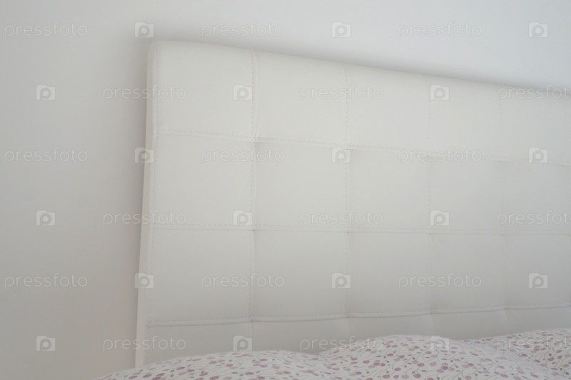 Мягкое изголовье. Обивка для мебели из натуральной или искусственной кожи и ткани. Мягкое изголовье у светлой стены