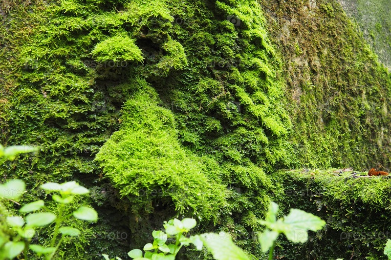 Баня Ковиляча, Лозница, Сербия. Руины здания. Каменная или бетонная влажная стена, покрытая ярко-зеленым мхом. Мохообразные, или Мхи, Настоящие мхи, Мохообразные, отдел высших растений