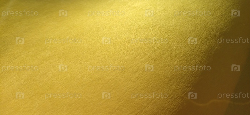 Бумажный или тканевый материал ярко-желтого цвета. Крупный план. Слегка согнутый лист. Легкий градиент и подчеркнутая шероховатая текстура поверхности. Фон или образец продукта. Солнечный веселый желтый