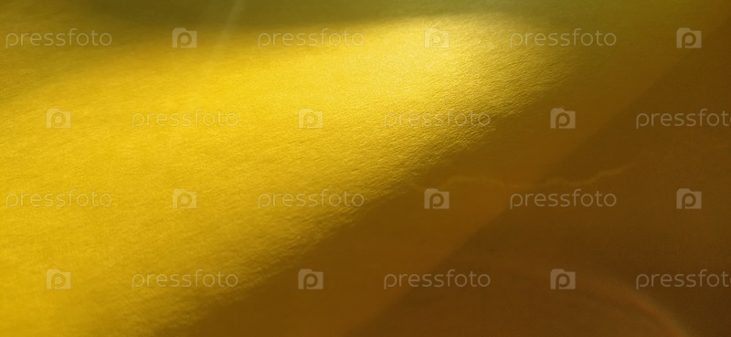 Бумажный или тканевый материал ярко-желтого цвета. Крупный план. Слегка согнутый лист. Легкий градиент и подчеркнутая шероховатая текстура поверхности. Фон или образец продукта. Солнечный веселый желтый