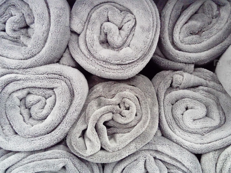Серые одеяла, свернутые и лежащие на полке в магазине. Скандинавский образ жизни. Элементы декора интерьера. Теплые одеяла