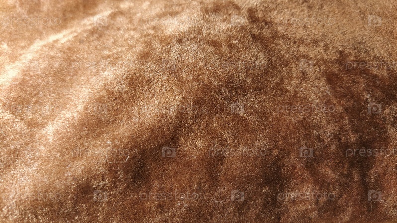 Коричневый и бежевый бархат. Крупный план. Текстура бархатной ткани. Неровности и переливы света. Сатин насыщенного насыщенного шоколадного цвета. Сложенный и плавный фон