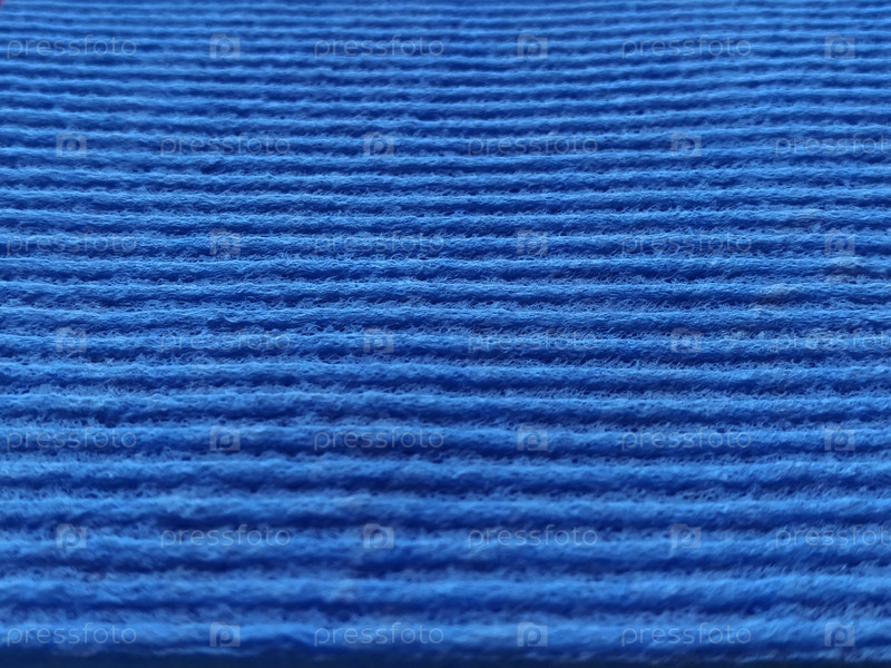 Ребристая ткань в синюю полоску. Крупный план губки для мытья посуды или салфетки из микрофибры. Размытие по краям