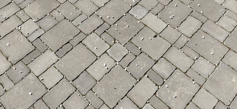 Мощеная улица старого города, выложенная квадратной и прямоугольной каменной плиткой в хаотичном порядке. Мягкий серый цвет. Текстура камня. Геометрический узор