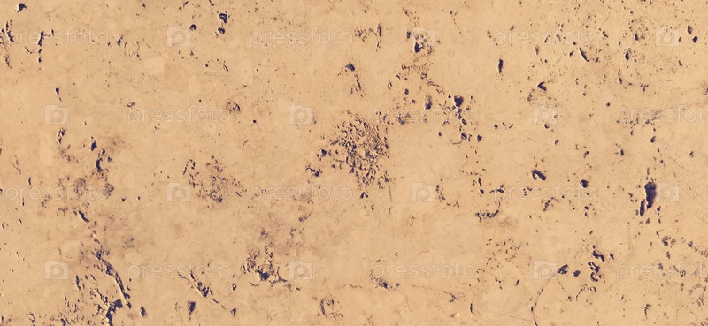 Песчаник или бежевый мрамор. Гладкая поверхность с небольшими темно-коричневыми пятнами и углублениями. Вечернее солнечное боковое освещение. Фрагмент исторического каменного здания на Калемегдане, Белград, Сербия