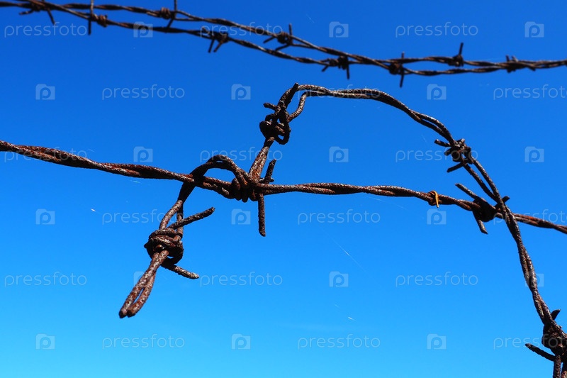 Колючая проволока, проволока, узкая полоска металлической ленты, с расположенными на ней острыми шипами, применявшаяся для изготовления заграждений. Ржавая колючая проволока на фоне голубого неба. Понятие войны, ограничения прав и свобод