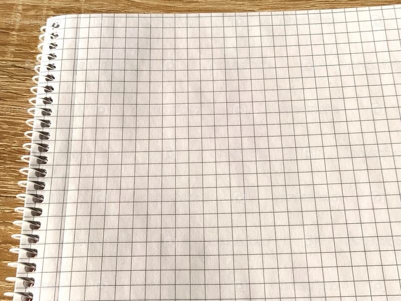 Клетчатый блокнот со спиралью. Открытый блокнот для заметок. Мягкий фокус. Скопируйте пространство. Пустая пустая страница для вашего текста