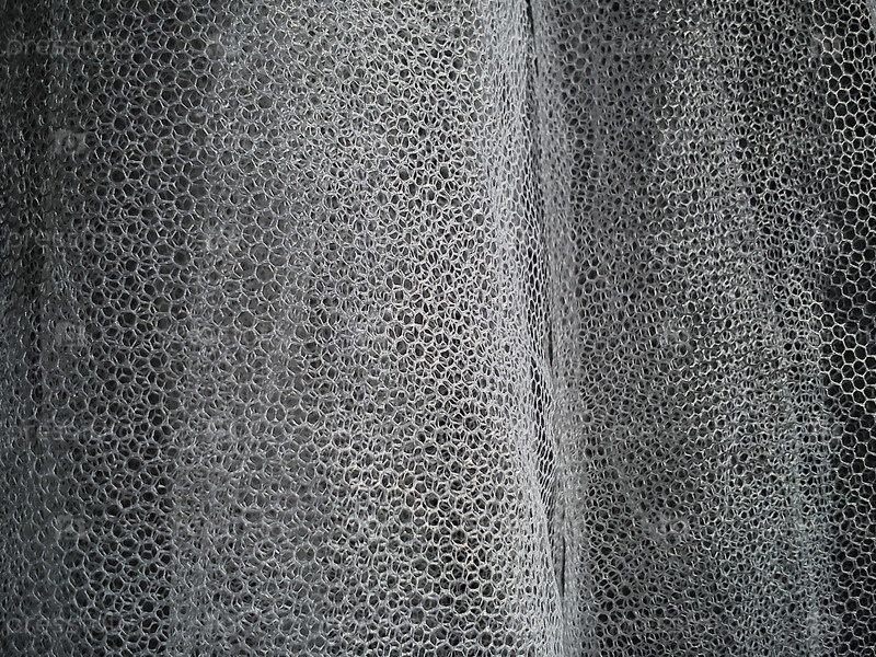 Белая мятая сетчатая ткань. Моющаяся вещь из синтетического материала. Москитная сетка складывается в мягкие складки. Ткань, похожая на фату невесты