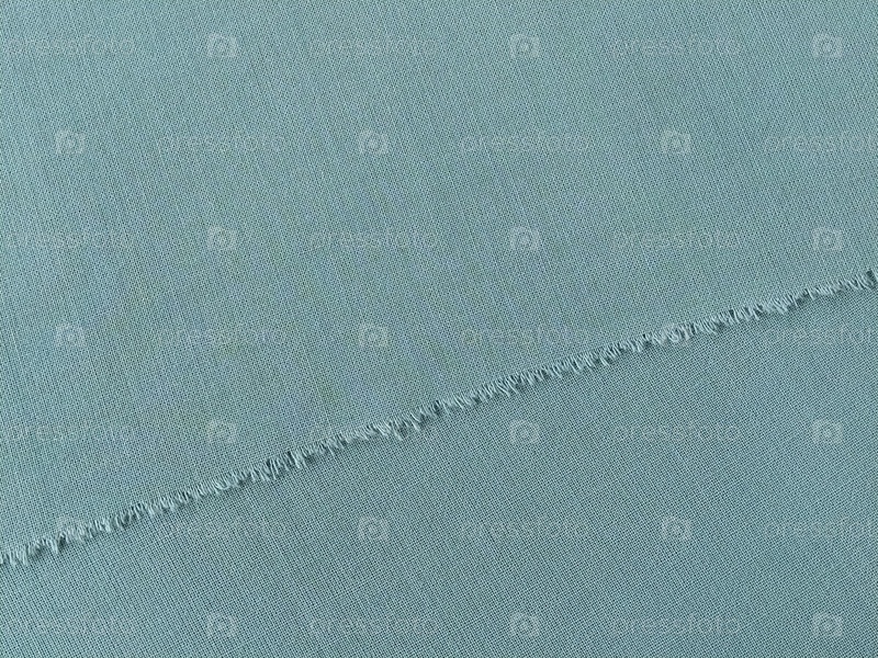 Рваный край тонкой шерстяной ткани зеленого или синего цвета. Свободные нити по краю куска ткани. Крупный план. Тканый фон. Спокойный зеленый пастельный цвет