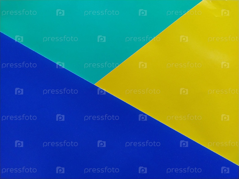 Бумага синего, зеленого и желтого цветов сложена друг на друга. Красочный фон