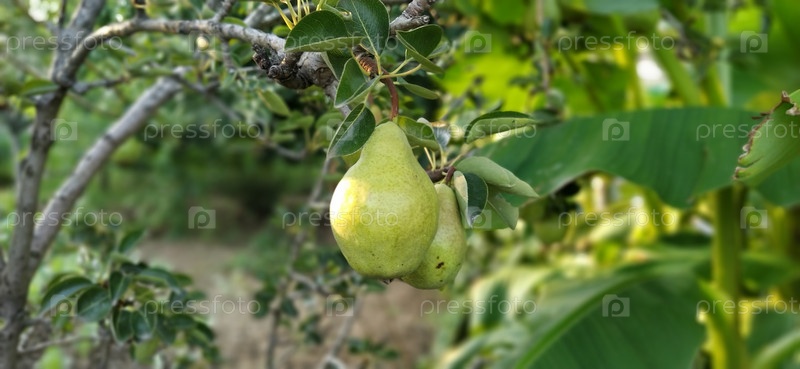 Груши на ветке. Органические фрукты, выращенные без химикатов