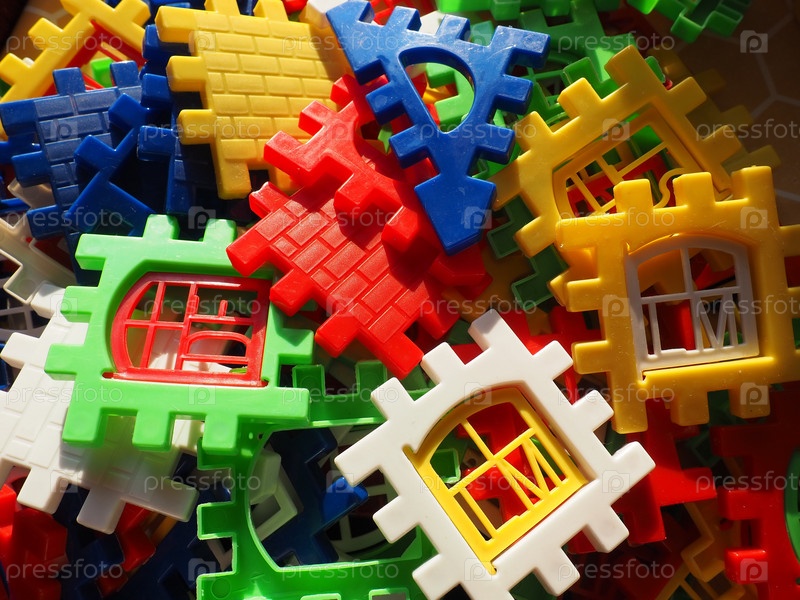 Детская дизайнерская игрушка. Пластиковые яркие разноцветные кубики для игры и развития воображения и мелкой моторики рук ребенка. Строительство игрушечного домика