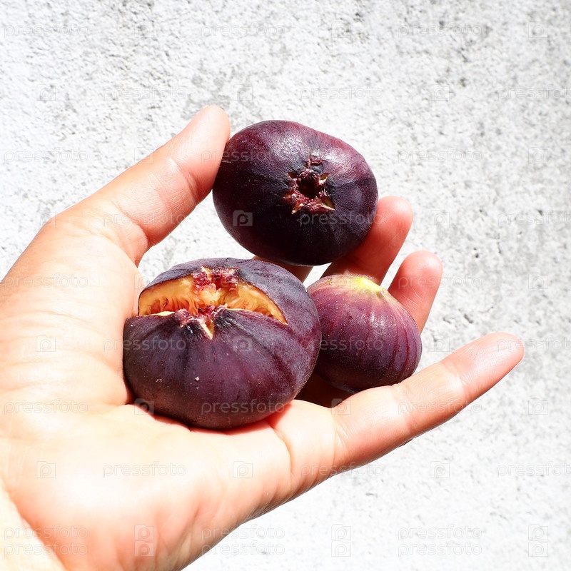 Фикус или обыкновенный фик, или Ficus carica субтропическое листопадное растение рода Фикус семейства Тутовых. Здоровая пища. Созревшие фиолетовые плоды инжира на ладони женщины
