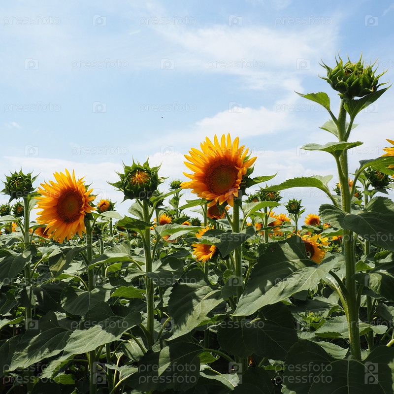 Подсолнечник Helianthus род растений семейства сложноцветных. однолетний и клубневый подсолнечник. сельскохозяйственное поле. цветущий бутон с желтыми листьями. пушистые листья. Сербия Сельское хозяйство