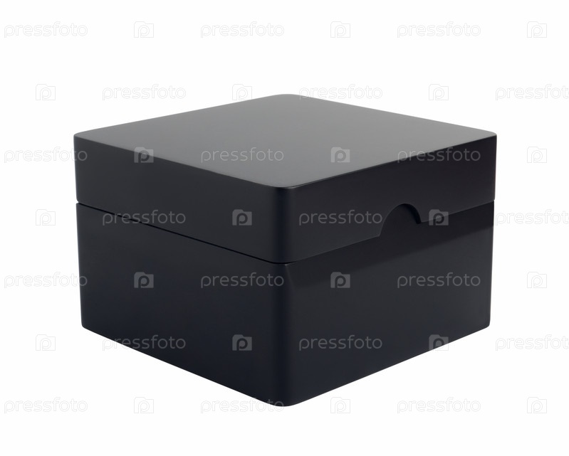 Черная закрытая подарочная пластиковая коробка на белом фоне