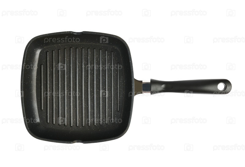 Черная квадратная сковорода с антипригарным покрытием на белом фоне