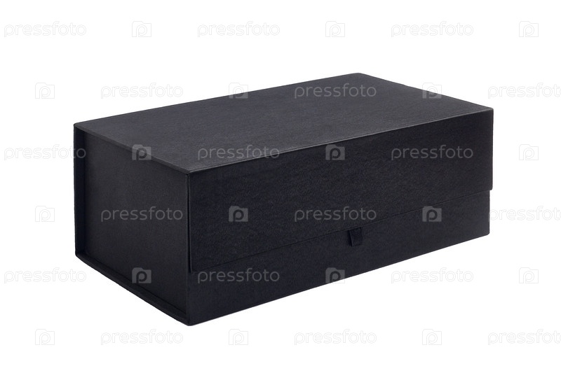 Картонная коробка, покрытая черной тканью, крупным планом, изолированная на белом фоне