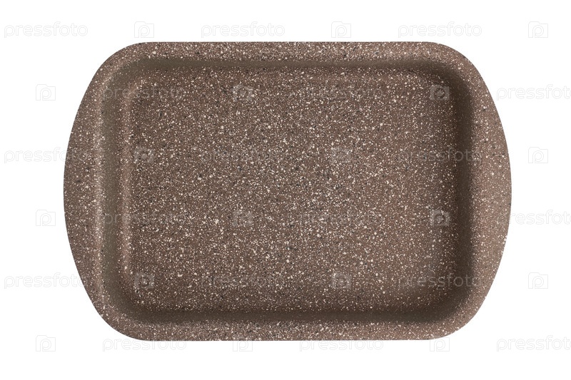 Глубокий антипригарный гранитный поднос, изолированный на белом фоне, для выпечки, вид сверху, крупный план