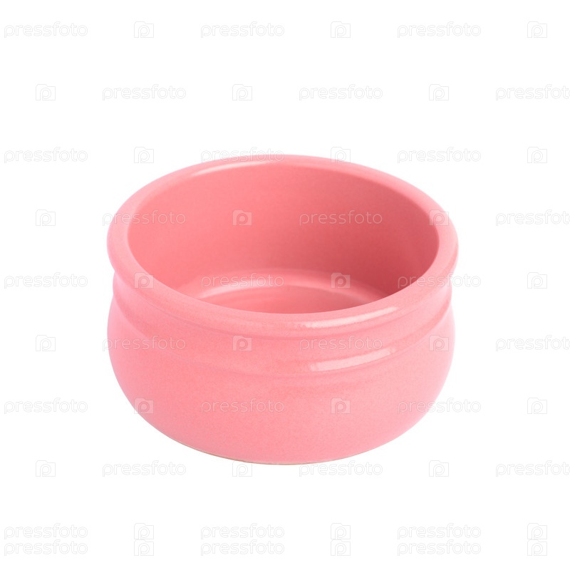 Пустая розовая керамическая чаша на белом фоне крупным планом, малая глубина резкости
