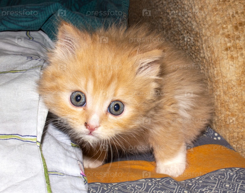 Рыжий пушистый котенок.Котенок рыжий с белой грудкой.Маленький рыжий котенок с голубыми глазами