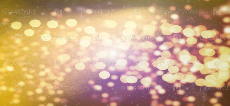 Таинственный абстрактный теплый фон или открытка. Солнечные блики на ярко-желтом фоне. Нюансы оранжевого, желтого, розового, фиолетового, бежевого и белого. Красивый эффект боке