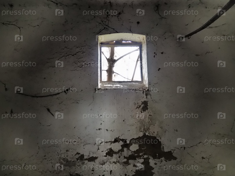 Страшные стены с паутиной. Слуга старой церкви. Небольшое окно в верхней части стены. Хэллоуин или место с привидениями. Тюремная камера с веревками для пыток. Видения и мир галлюцинаций