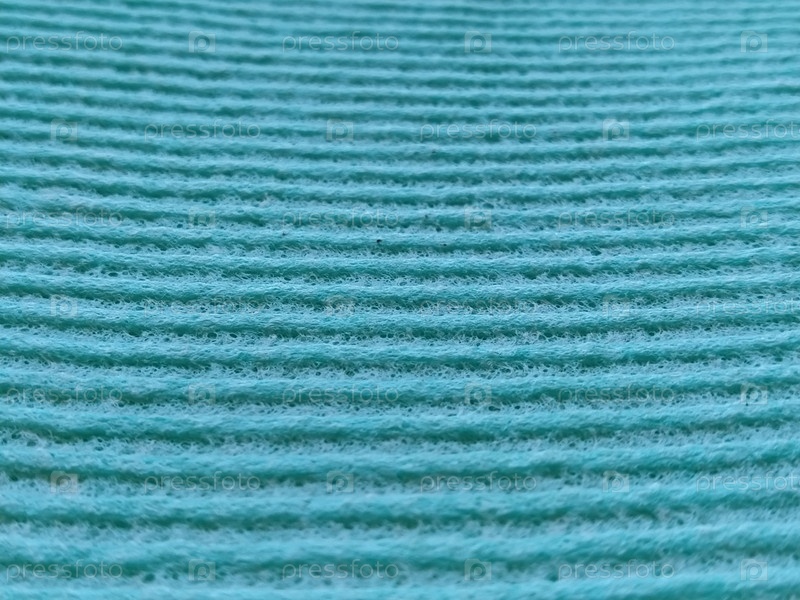 Ребристая полоса зеленого или цвета морской волны. Губка для мытья посуды или ткань из микрофибры крупным планом. Мягкий фокус