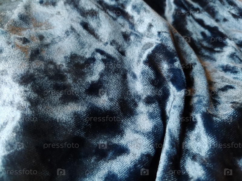 Бархатная велюровая ткань на фоне светящихся светлых и темных теней. Фон для театральных и модных дизайнерских тем. Приятная синяя ткань с переливом