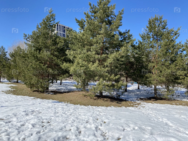Зима в городском парке в сухой солнечный день