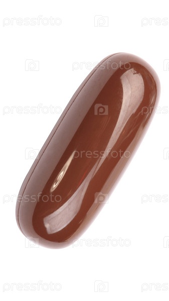 Одна коричневая желатиновая таблетка, выделенная на белом фоне
