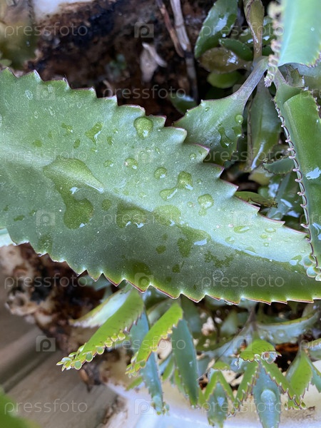 Каланхоэ в цветочном горшке в сухой солнечный летний день