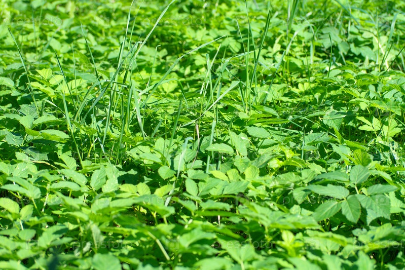 Зеленая трава в сухой солнечный летний день