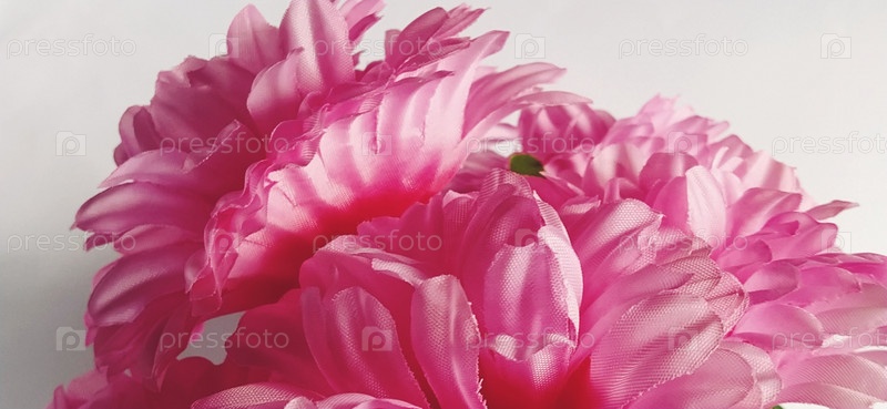 Розовые хризантемы на белом фоне. Искусственные цветы в букете