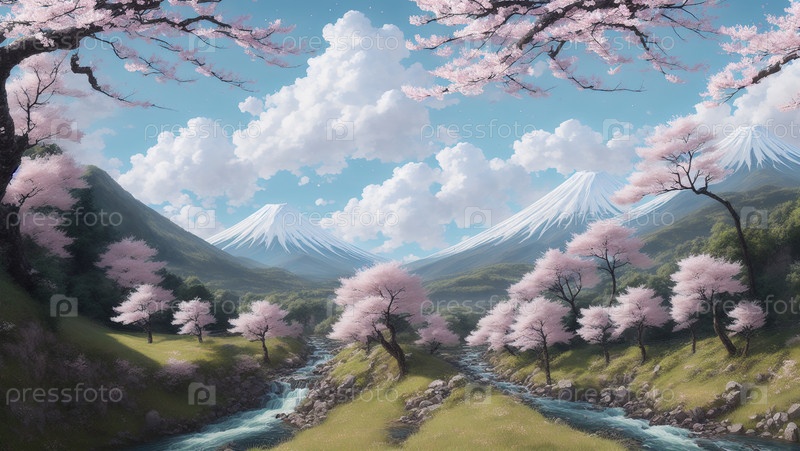 Горы и сакура