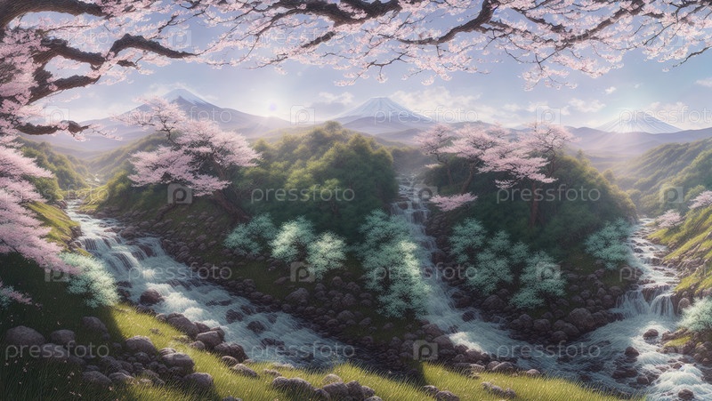 Горы и сакура