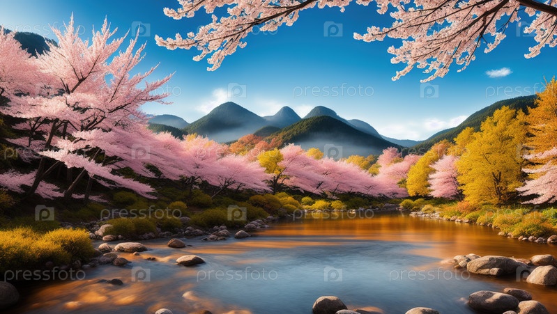 Горы и сакура