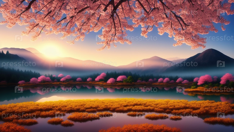 Горы и сакура