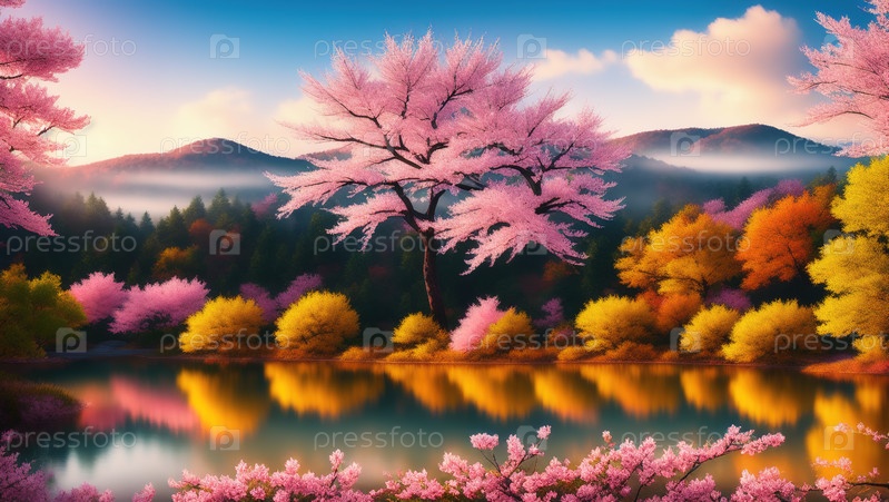 Горы и сакура