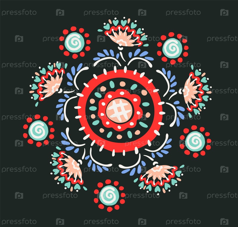 Набор этнических элементов. Бордюр представляет собой полосу с цветами, листьями, ветками, вензелями. Народная вышивка. Славянский, украинский, русский мотив. Хохлома, матрешка, дымковская игрушка. Мексиканский, индийский, цыганский ковер. Вязаное кружево