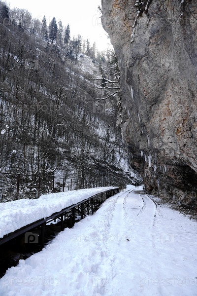 Зимний каньон реки Курджипс. Гуамское ущелье. Россия