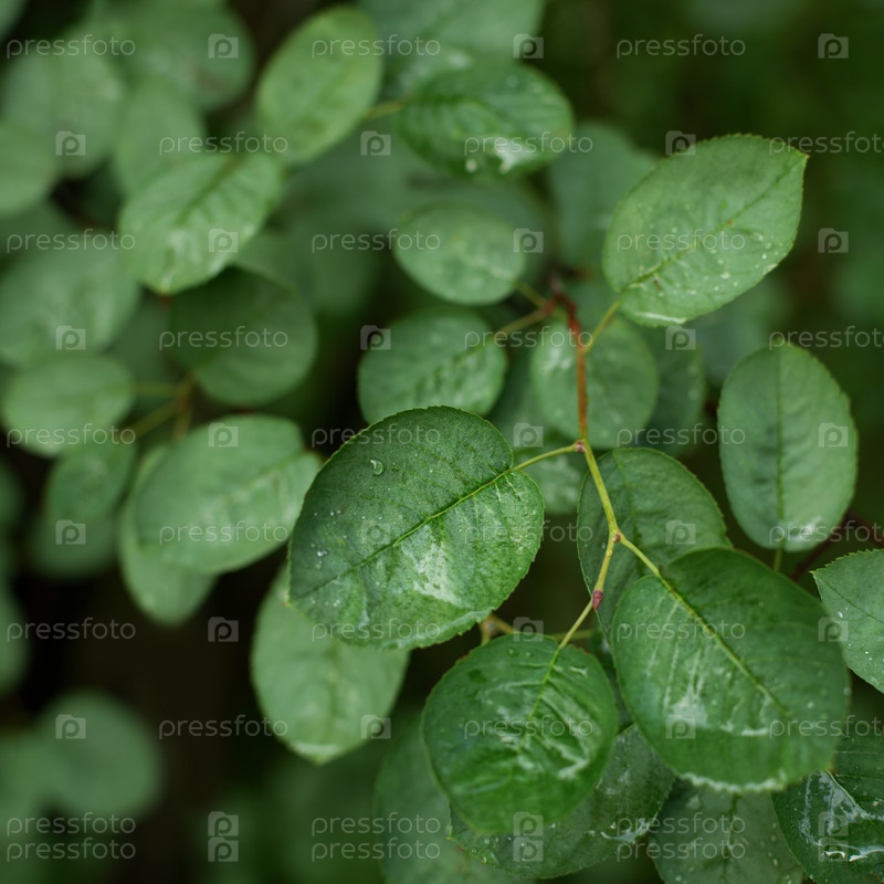 Крупный план зеленой листвы после дождя. Естественный квадратный фон