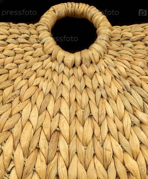 Фон сделан из корней водного гиацинта или Eichhornia crassipes. Красивое плетение с круглой ручкой. Естественные материалы для производства экомебели, корзины