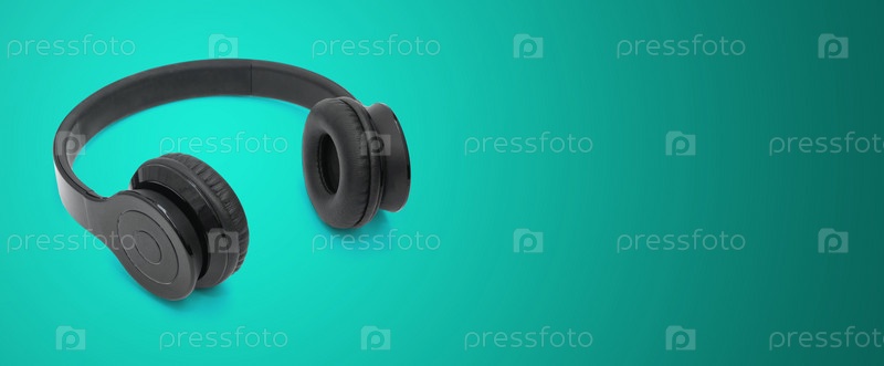 Беспроводные наушники на цветном фоне цвета морской волны