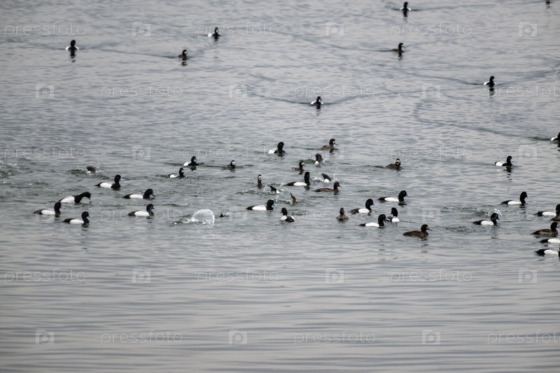 Стая перелетных птиц на воде