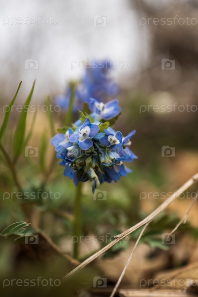 Голубые цветы весной в лесу