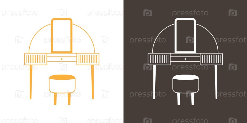 Туалетный столик с зеркалом и пуфом. Иконка на белом и черном фоне