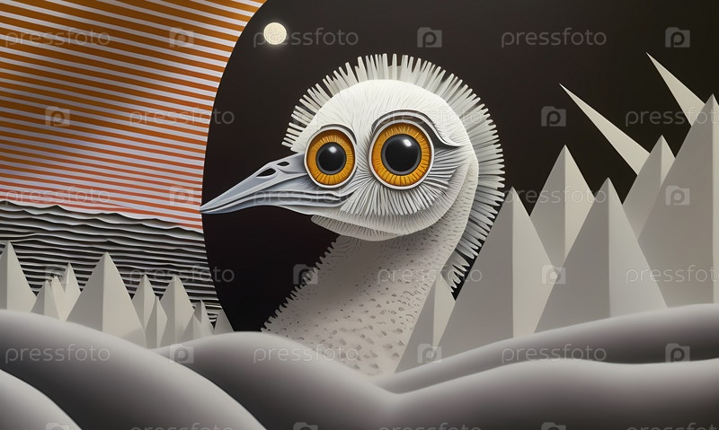 Бумажная аппликация птицы в чужом космическом пространстве. созданная с помощью искусственного интеллекта технология нашего будущего. Генеративный ИИ