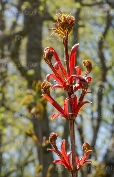 Молодые листья на дереве. Весенний пейзаж. Цветущая ветвь. Вертикально
