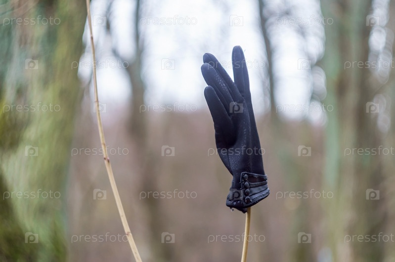 Потерянная перчатка. Перчатка на ветке. Черная перчатка в лесу
